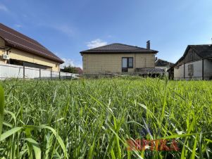 Площадь участка составляет 6 соток земли, в собственности межёван, фасад 16 м.