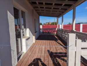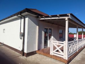 - Дом с завершённым внешним обустройством: отштукатуренный фасад придаёт строению аккуратный и современный вид, надёжная крыша с водосточной системой, стильная терраса для отдыха.