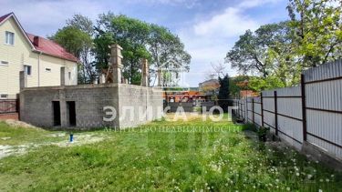 На участке начато строительство дома,, на первом этаже выведены стены, на