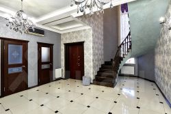Мебель европейских производителей, дорогая техника, французский камин. Общая зона с тёплым полом.