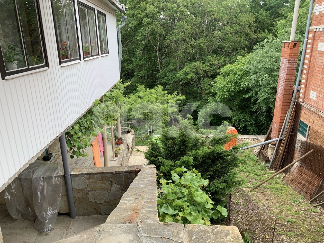Продается дом в городе Горячий Ключ. Общая площадь 218,6 кв. м, расположенный на 6,83 сотках земли, участок со склоном вниз. Год постройки 1998, дом из пеноблока и кирпича. В планировку дома входит: цокольный этаж, который оборудован под погреб, состоит из трех помещений; на первом этаже размещены прихожая, коридор (зимний сад), холл, 2 комнаты, кухня, балкон и выход в гараж. Второй этаж - 2 комнаты и выход на чердак.