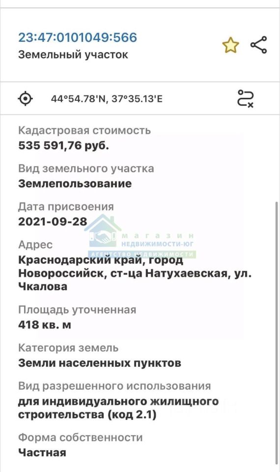 Ул. Чкалова. Станица Натухаевская. 23:47:0101049:566.