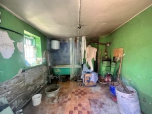 Есть цокольный этаж (ванная комната, топочная, хоз.помещение) и две жилые комнаты с высокими потолками. Крыша не течет.