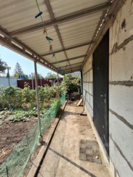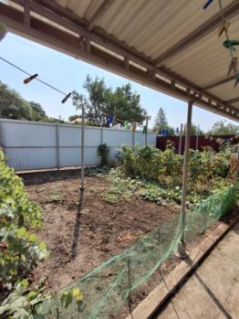 Земельный участок 7 соток земли, на участке есть баня, гараж, сделан навес, детская площадка. Так же есть небольшой огород, посажены цветы, двор забетонирован в бетон.