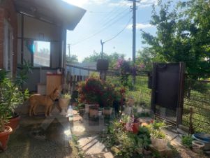 На участке в доль дома гаражный навес длинный 16 метров. уличный душ.курятник. уличный туалет. плодовые деревья. несколько черешни.вишни