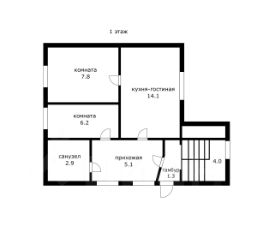 По планировке на первом этаже 2 комнаты и кухня гостиная, на втором сейчас одна большая комната, но ее можно разделить и сделать, как вариант, две.