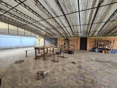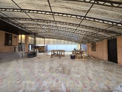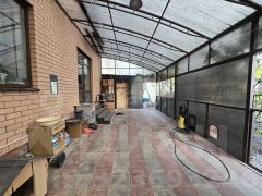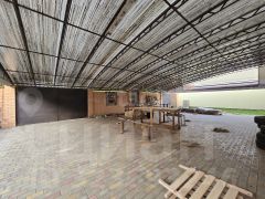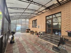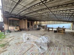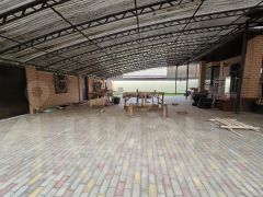 У дома большая придомовая территория с 2-мя воротами для машин, выложенная брусчаткой . Имеются две хозпостройки на участке.