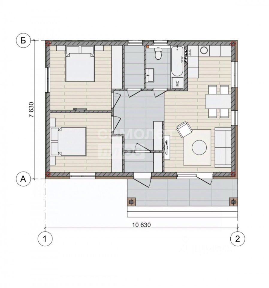 Характеристика дома: 93,9 квадратных метров предлагает комфортное пространство для всей семьи. Продуманная планировка включает две изолированные спальни и просторную кухню-гостиную с большим витражным окном и с выходом на террасу, где вы сможете наслаждаться свежим воздухом и проводить время с близкими.