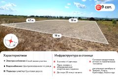 Предлагается к продаже земельный участок площадью 9 соток в станице Старотитаровской.