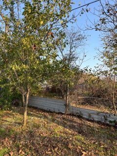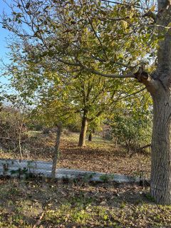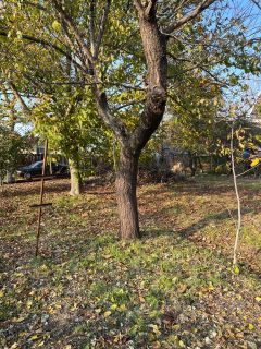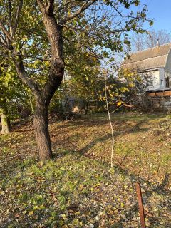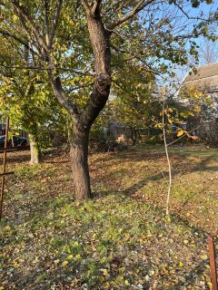 На участке есть несколько фруктовых деревьев , шикарный раскидистый орех.