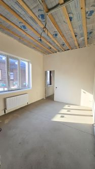 * Планировка с тремя спальнями одна из которых мастер-спальня со своим сан узлом, гардеробной при входе в дом, кладовой и просторной кухней-гостиной с выходом на террасу.