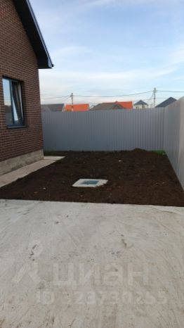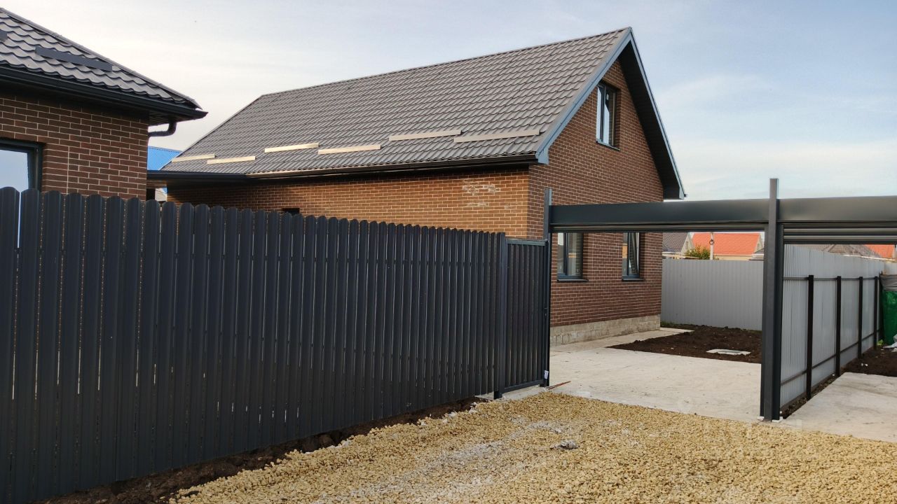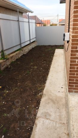 - Роллетные ворота. По периметру дома сделана отмостка. Забетонировано место под заезд машины.