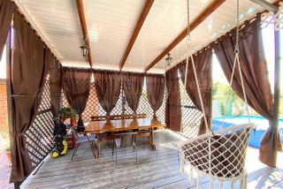 Терраса крытая с большим столом для дружных посиделок, пол террасная доска, что позволяет из дома прямо в тапочках или босиком выходить.