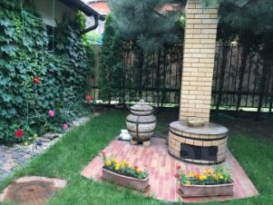 Участок занимает 18,6 соток земли, на которой расположен дом, имеется парковая зона, на заднем дворе теплица и приподнятые грядки для огорода. За домом оборудован вольер с будкой для собаки.