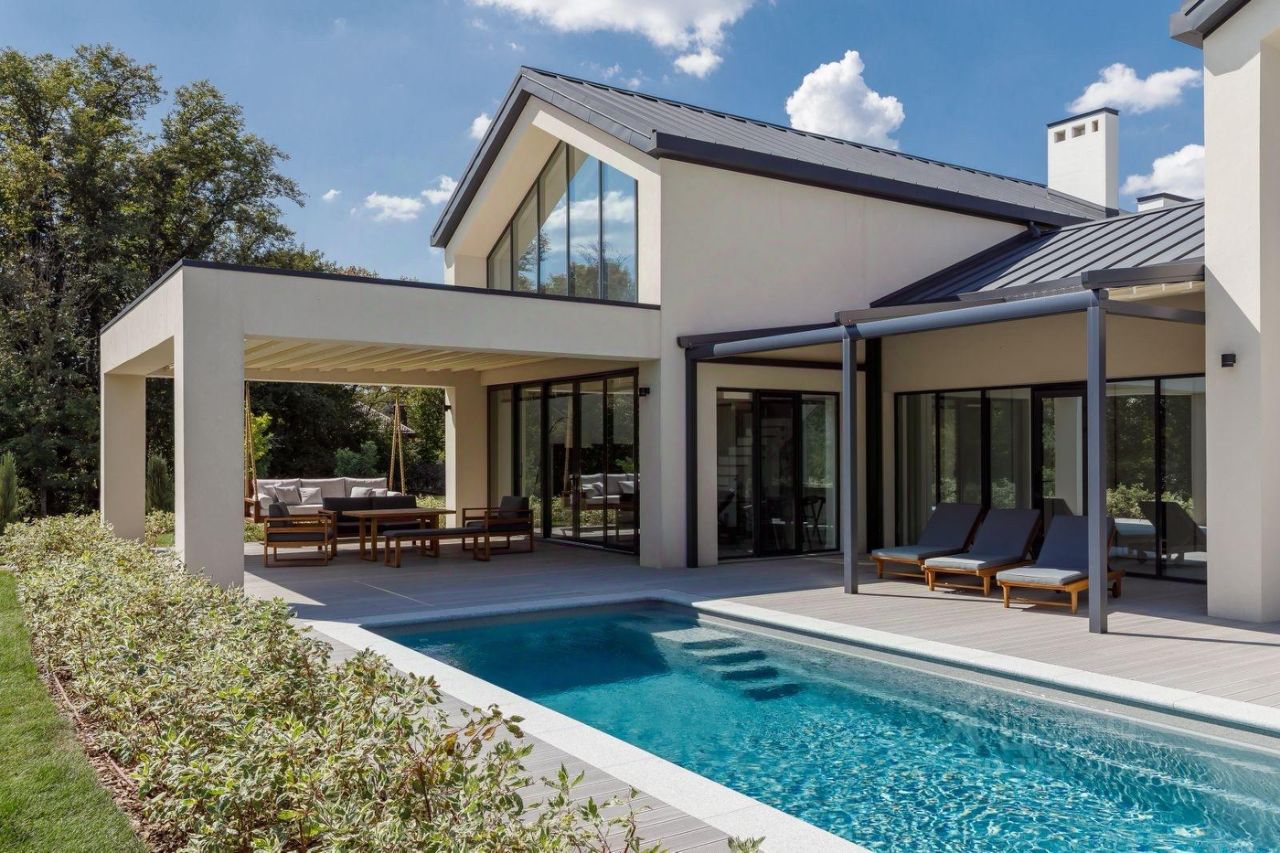 В доме также есть бассейн, который зимой поддерживается на постоянной температуре +35 градусов с помощью роллет. Система вантаж предотвращает загрязнение воды, поэтому бассейн не требует чистки месяцами.