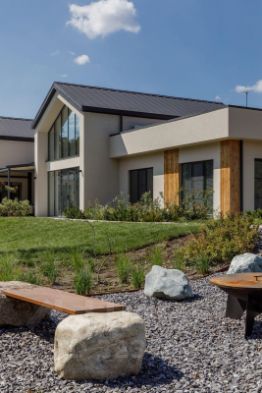 Обслуживанием ландшафтного дизайна занимается специализированная компания по договору. Водоочистка предусмотрена как для дома, так и для полива.