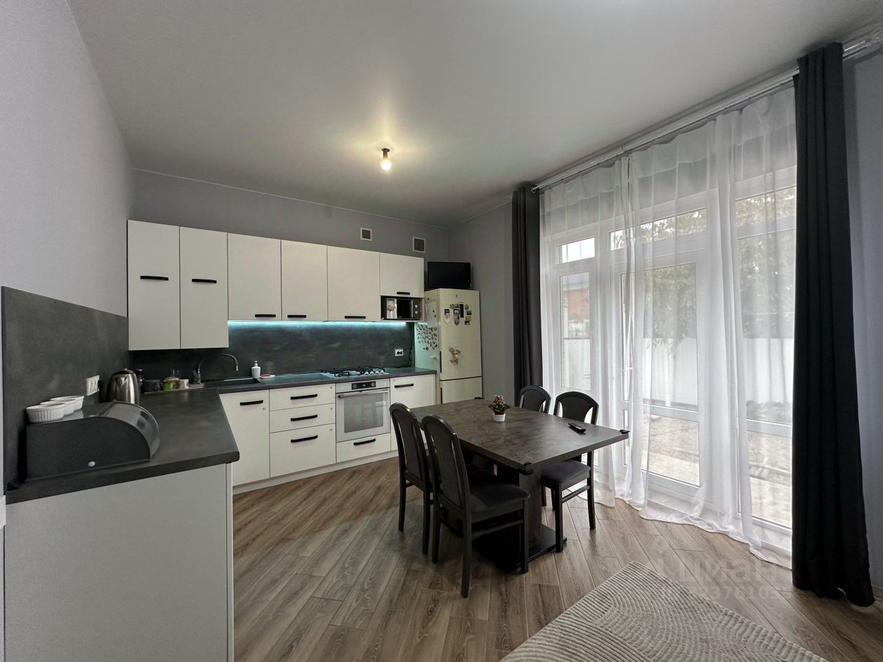 На первом этаже расположена кухня гостиная со всей мебелью и техникой,
