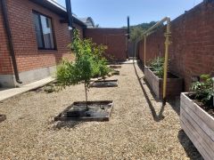 Гараж выполнен из кирпича и имеет забетонированный пол. Участок большой и просторный, что дает возможность реализовать любые ваши идеи. Он огорожен забором из металлопрофиля на ленточном фундаменте. Низкие коммунальные платежи благодаря наличию собственной скважины и газа.