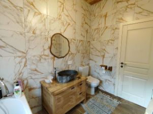 Подзаголовок: Новый, теплый дом под ключ с камином, теплыми полами и фруктовым садом. Идеальная инфраструктура для семьи и всего 17 км до моря!