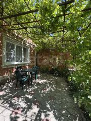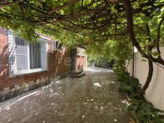 Во дворе въезд на 3 машины, навес, виноградная беседка, высажен фруктовый сад, цветы.
