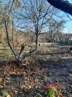 На участке фруктовый сад: вишня, черешня, персики, груши, яблоня.