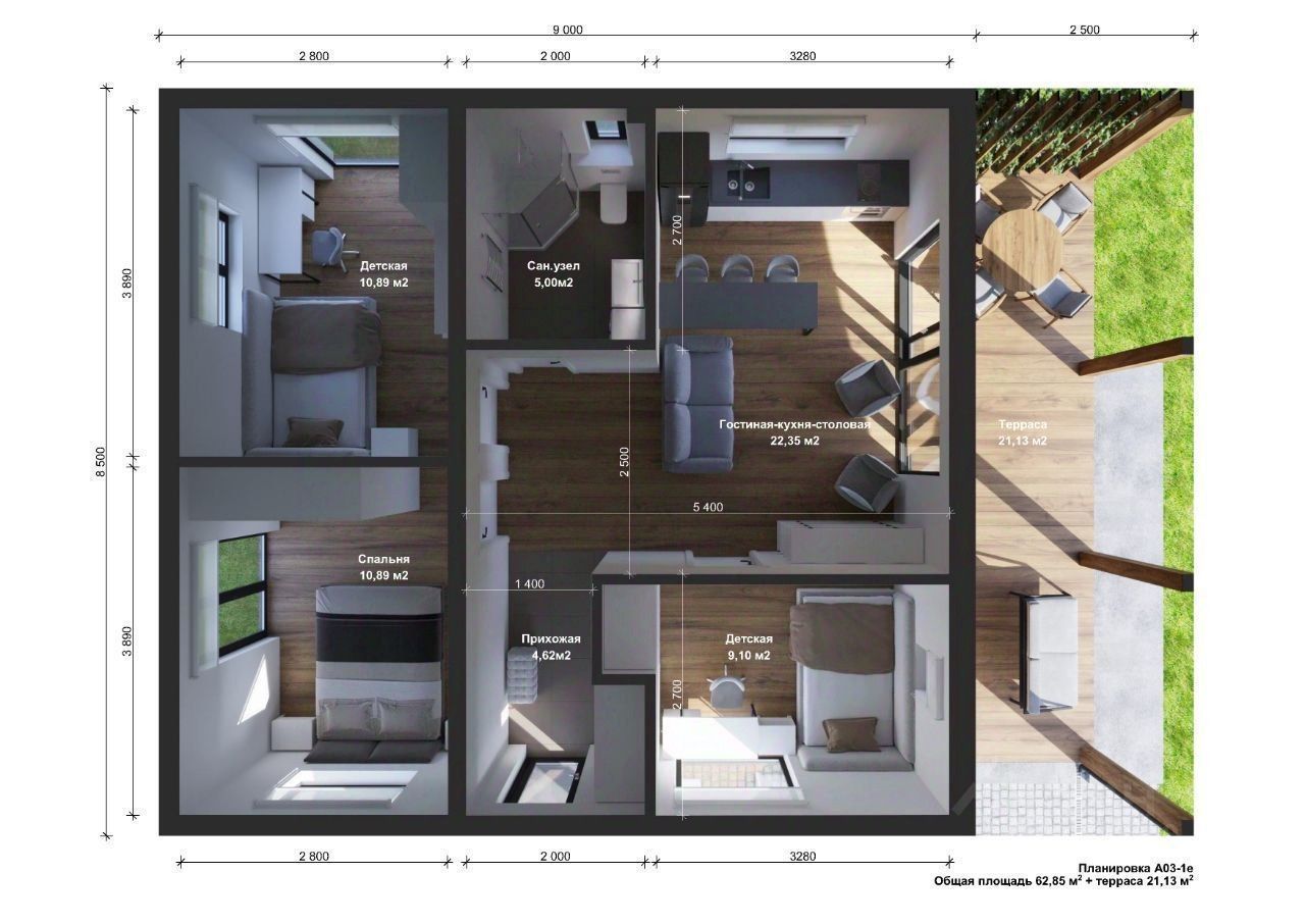 * **3 просторные спальни** для отдыха и восстановления сил.