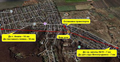 Участок полностью освоен и ухожен: здесь высажены плодовые деревья (яблони, груши, черешни, сливы) и ягодные кустарники (смородина, крыжовник, ежевика, виноград), которые ежегодно дают обильный урожай. Дополнительные преимущества — ровный рельеф, удобный подъезд и огороженная территория.