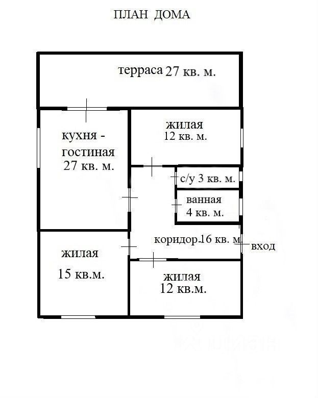 коридор, куxня-гoстинaя, 3 cпальни, котeльная, cовмещённый санузeл, пpoстoрнaя терраса: