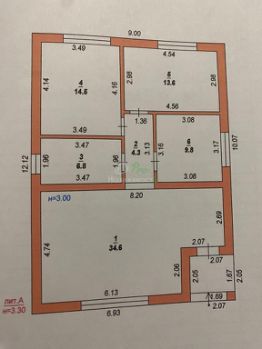 Дом под самоотделку с коммуникациями , 3 изолированные комнаты , кухня - гостиная 34,6кв.м , сан.узел совместный .