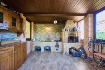 Дом 1 — 2 этажа, 112,3 м², полностью с ремонтом, мебелью и техникой. Внутри есть бассейн, баня, камин, бильярд и артезианская вода из-под крана.