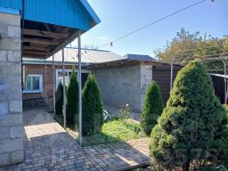 Станица Тбилисская, ул. Дальняя. Жилой кирпичный дом 1977 г. п. Общая площадь 82 кв. м. Четыре комнаты, две из них изолированные, кухня, раздельный санузел, прихожая. Газ, котёл, колонка, вода, все коммуникации и приборы учёта. Сплит система, МПО, в двух комнатах натяжные потолки, новая крыша. Закрытый навес, подвал, два капитальных гаража с роллетами, в одном есть смотровая яма, постройки для кур и кролей. Двор тротуарная плитка, туи, ели, розы. Земельный участок 647 кв. м., ЛПХ. Фасад 15 м. ПРОДАЖА С МЕБЕЛЬЮ. Дом полностью готов для проживания!