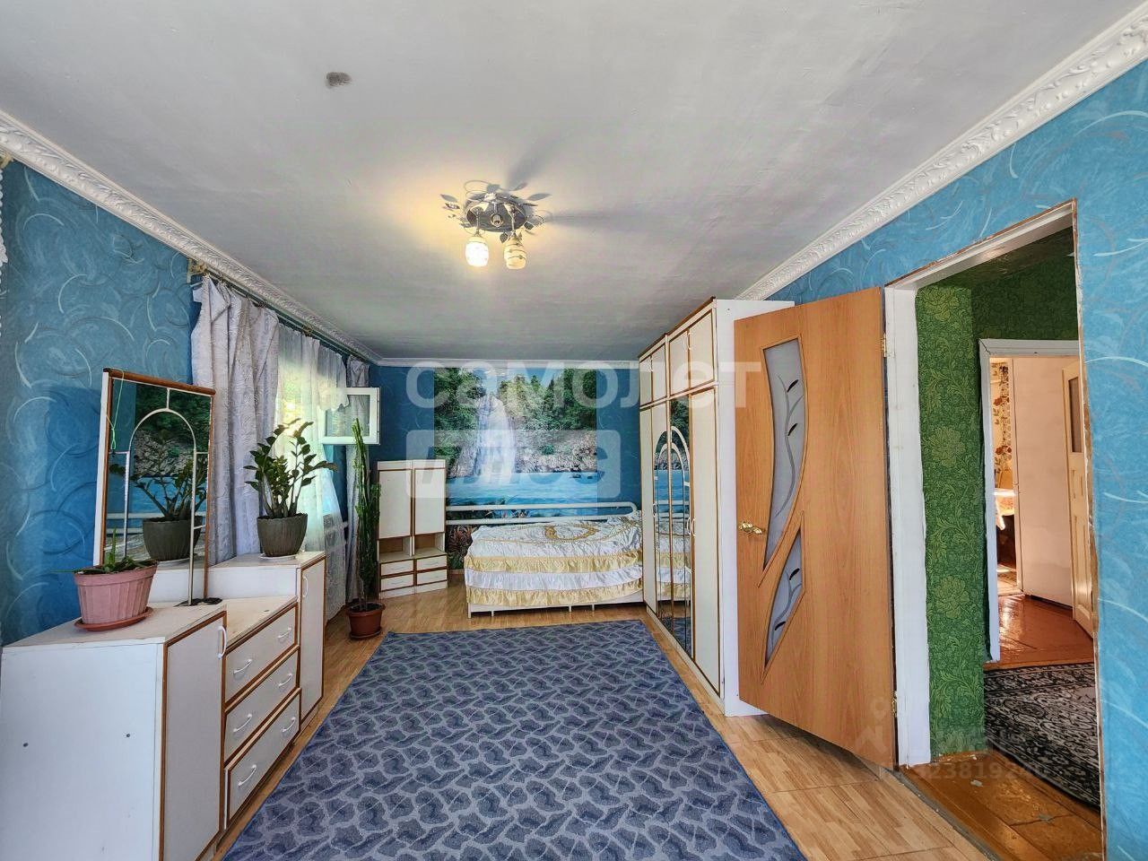 В доме 2 большие комнаты, кухня-гостиная, ванная и туалет.