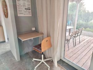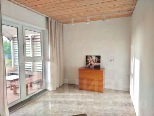 Планировка: 1-й этаж - кухня-гостиная 21 м2 с выходом на просторную террасу 21 м2 под крышей, спальня 10,4 м2, совмещенный санузел, системы хранения одежды и обуви, терраса перед входом в дом;