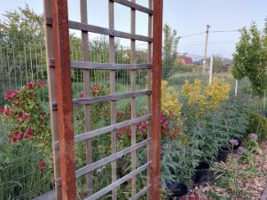На участке высажены плодово-ягодные деревья и кустарники, виноград, вечно-зеленые насаждения, цветы и декоративные растения.