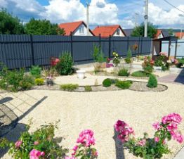 Участок полностью огорожен, установлены откатные ворота. На территории высажены плодовые деревья, декоративные кустарники и розы, а также имеется баня.