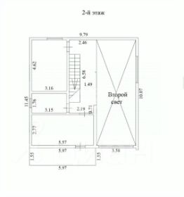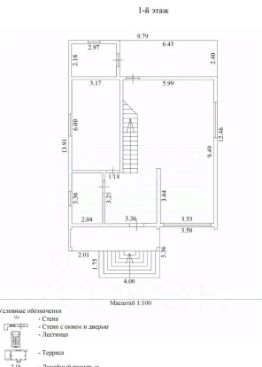 На первом этаже находятся кухня-столовая-гостиная (кухонный гарнитур остается), спальня, прихожая и санузел.