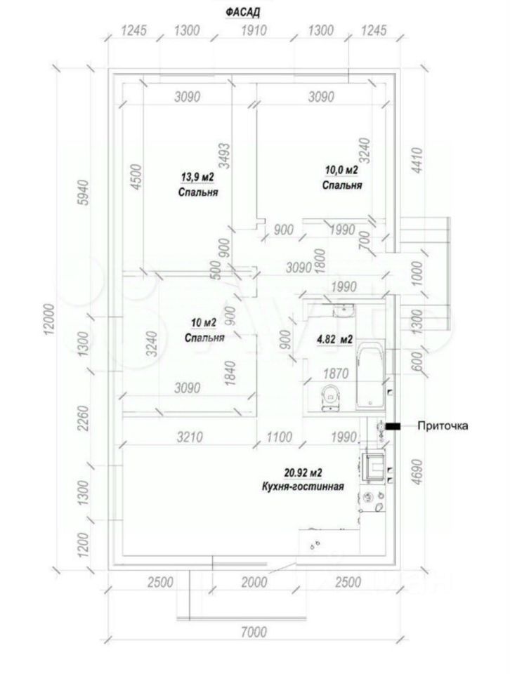 Все комнаты изолированные, совмещенный санузел, кухня-гостиная с выходом на террасу