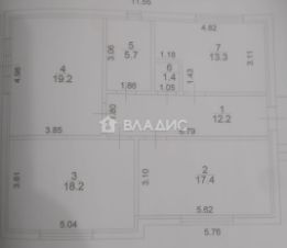 Три комнаты с площадями 18,2 кв. м, 17,4 кв. м и 13,3 кв. м позволяют организовать пространство по своему вкусу. Кухня площадью 19,2 кв. м. Санузел совмещённый.