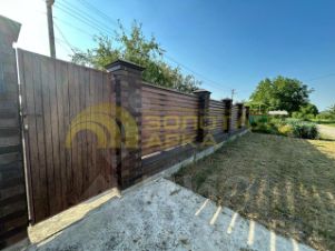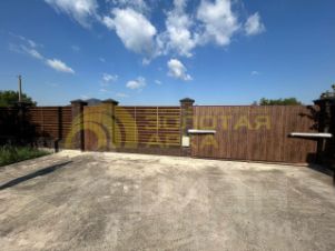 Двор огорожен надежным качественным забором с автоматическими воротами на пульте управления. Есть навес, гараж и хоз.постройки.