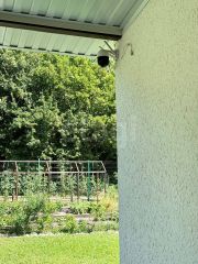 • Навес из профнастила - эстетичнее, не трещит от жары, и служит дольше поликарбоната.
