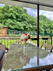 Имеется остеклённый выход из кухнигостиной на террасу, и в котельную-кладовую:
