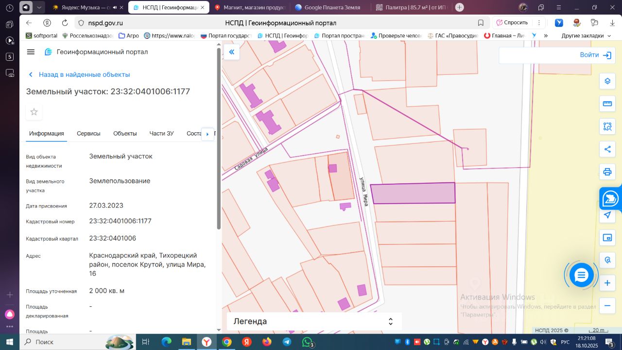 Кадастровый номер:23:32:0401006:1177; 22 метра фасад, 91 метр длинна.