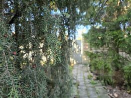 - На участке — бетонный бассейн (готов к благоустройству), теплица, множество плодовых и хвойных насаждений.