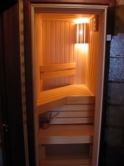 Дом построен из керамзитобетонного блока, утепление пенопласт 8 см., крыша 3 слоя мин. Ваты., потолки 3 м., радиаторы отопления в спальнях, в остальных помещениях теплый пол, 2 изолированные просторные спальни одна с гардеробной комнатой, кухня с выходом на террасу, гостиная. Совмещенный с\у с сауной, так же есть котельная, где размещено все оборудование по снабжению дома всеми коммуникациями.