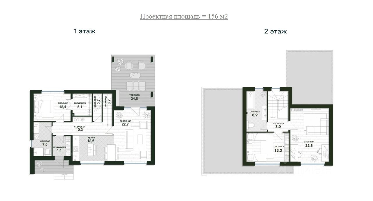 Двухэтажный коттедж 155 м2 и земельный участок 600 м2