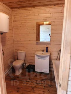 Полностью оборудованный санузел — ванна, унитаз, раковина с тумбой, бойлер.