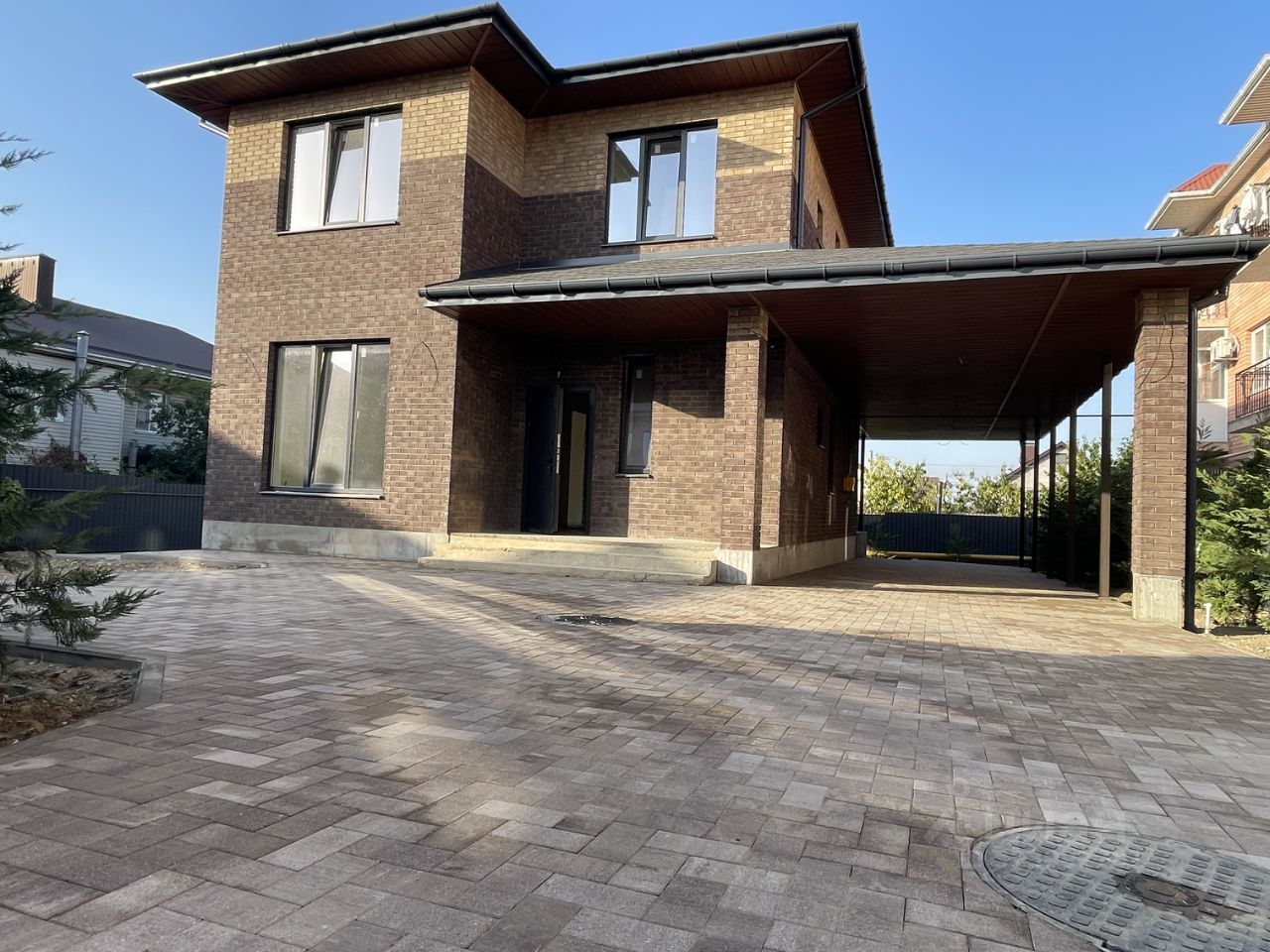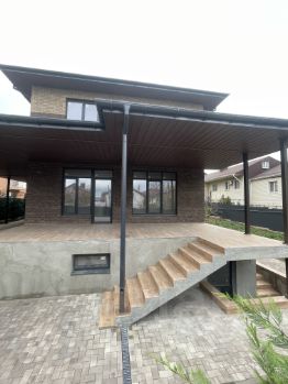 Площадь дома 187 кв. м + просторный капитальный навес для нескольких автомобилей + полуподвальное помещение под террасой 24 кв. м. (хоз. Блок), земли 6,5 соток + 1,5 сервитут - итого 8 соток.