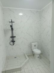 В доме полностью сделан ремонт, на стенах обои, на полу ламинат,плитка , натяжные потолки , установлены люстры. Санузел полностью отделан плиткой , установлена сантехника.