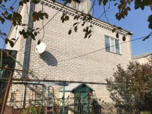 Продаю 2-х этажный дом (фасад 10,45м., на 9м), кирпичный - внутренние стены красный кирпич, облицовка - белый, силикатный: 1-й этаж - зал 23м.кв, кухня 13м.кв, тулет 1,6м.кв, ванная комната 6,4м.кв., кладовка1,6м.кв., котельная 2,5м.кв, 2-й этаж - 3 спальни (20,6, 15,9, 9,6 м.кв), ванная с туалетом 2,9 м.кв.. В доме газ, отопление - газовый котел, водопровод - центральный. Пол на обоих этажах паркетный (дуб, бук, граб). Канализация местная, сливная яма с люком 7 м.куб, для возможности выкачивания. Гараж, 6 х 4 м.кв., кирпичный, смотровая яма. Во дворе: отдельное здание - летняя кухня, два сарая, баня с бассейном. Летняя кухня - газовая колонка, водопровод, канализация. Баня - раздевалка, душ, парилка, бассейн 7м.куб, все обшито деревом, в парилке нагревательный котел с камнями. Для бассейна сделана отдельная сливная яма. Двор асфальтирован, имеется возможность расположения 4 машин. Половина участка под дом, двор, гараж, и летнюю кухню с баней. Вторая часть участка - огород с деревьями. Фасадная часть забора закрытый металлический, по периметру - забор сетка рабица.