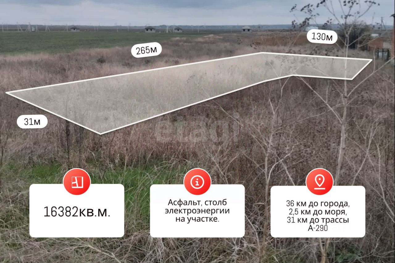 Участок сельскохозяйственного назначения площадью 1,6 гектара расположен в поселке Кучугуры на берегу Темрюкского залива Азовского моря.